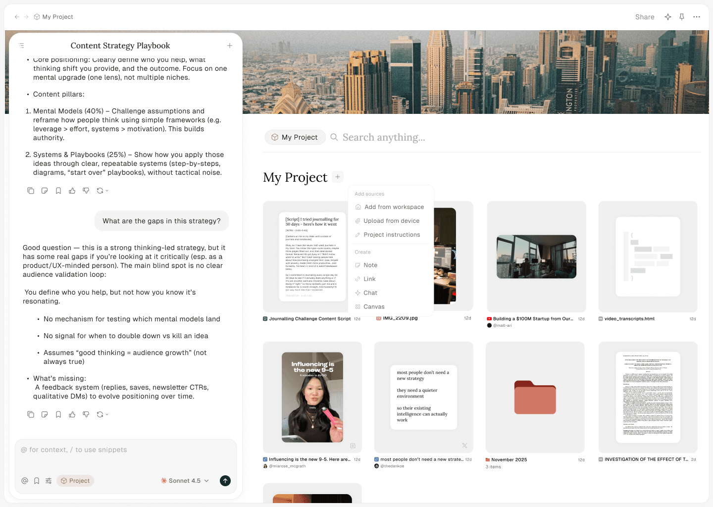 Imagine you're working on a newsletter, article, video script, or some other creative project. You have a bunch of sources you're searching through for ideas... YouTube videos, PDFs, old content, and more.