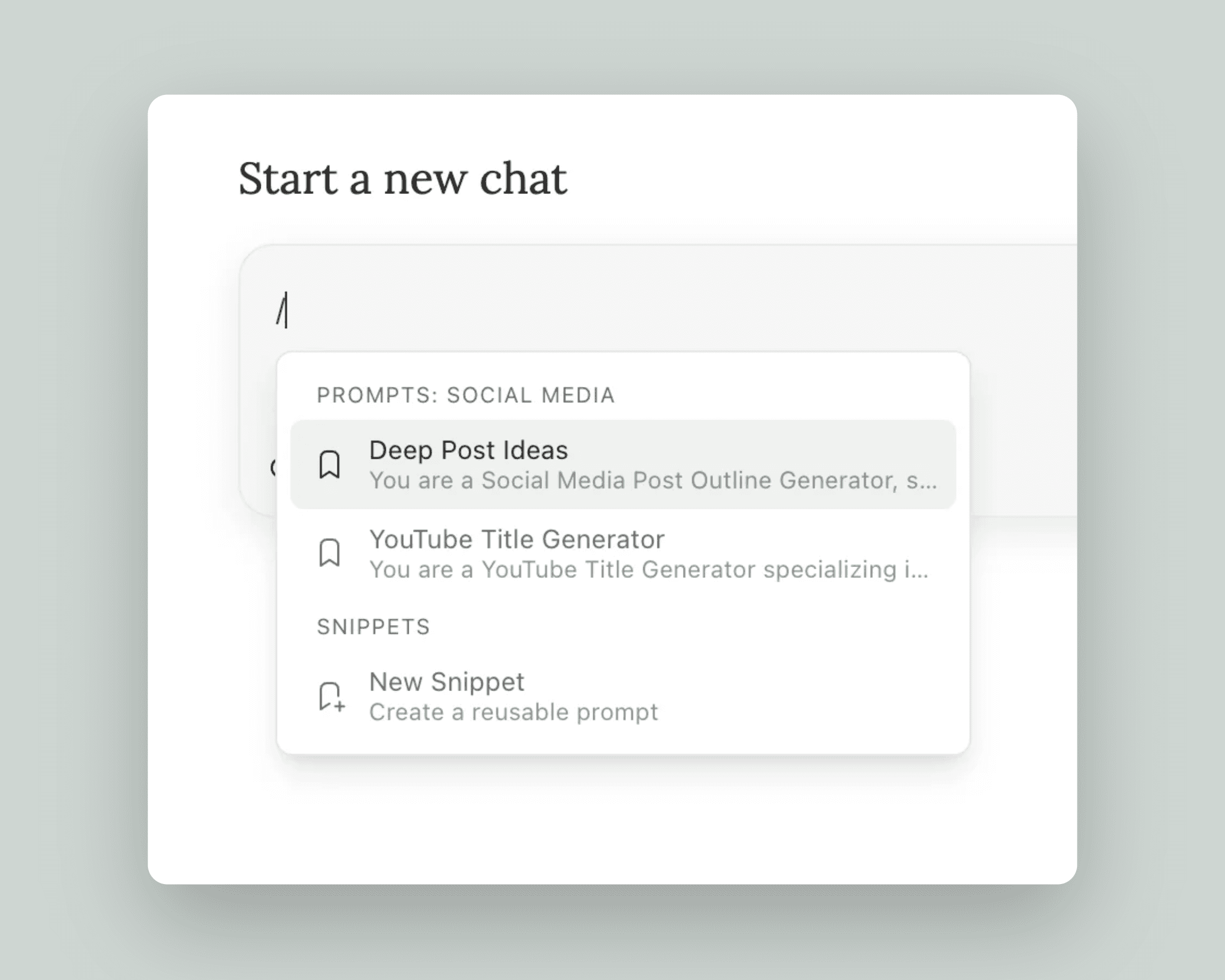 In future updates, we will further integrate Snippets into the entire workspace, and the Snippets you save as prompts will show up in the New Chat page so you can quickly pick from them.