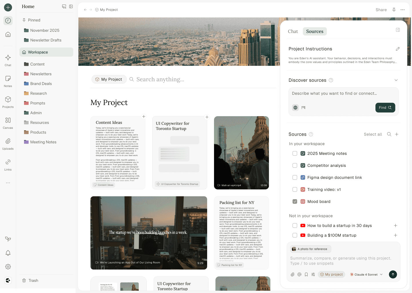If you've used Claude Projects or NotebookLM, you get the gist of what this is. The difference with Eden is that all of your files, links, and notes are in your drive.